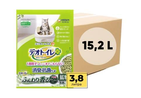 Unicharm Наполнитель цеолитовый для системных туалетов Deo-Toilet Nyantomo с растительным ароматом крупные гранулы кор 4уп*3,8 л