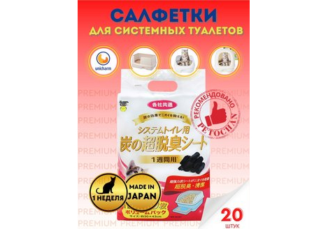 Антибактериальные пелёнки Super Cat для системного туалета Unicharm для кошек,