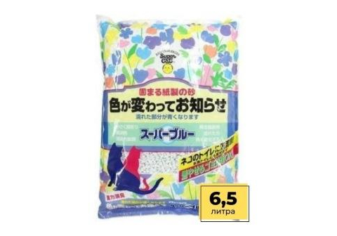 Super Cat Наполнитель для кошачьего туалета бумажный комкующийся с голубым индикатором для 2-х и более кошек 6,5л