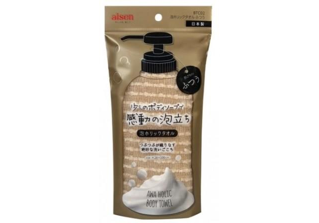 AISEN Foam Holic Массажная мочалка средней жесткости, бежевая, 28Х100см.