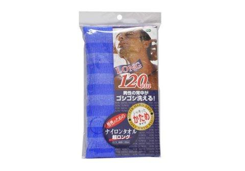 OHE Мужская удлиненная мочалка для тела Nylon Towel Super Long сверхжесткая синяя, размер 28Х120см.