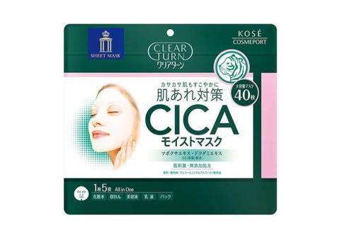 KOSE Clear Turn CICA Moist Mask Увлажняющая и тонизирующая тканевая маска для ухода за подверженной раздражению кожей лица, с экстрактом центеллы азиатской, 40шт в мягкой zip-упаковке.