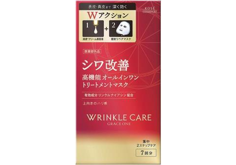KOSE "Grace One Wrinkle Care Double Concentrate Mask" – это высокоэффективная многофункциональная маска, которая разглаживает морщины в два этапа.