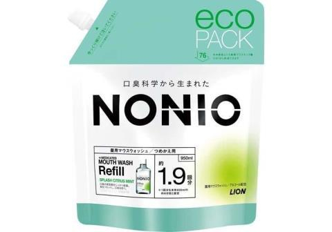LION Ежедневный зубной ополаскиватель "Nonio" с длительной защитой от неприятного запаха (аромат цитрусовых и мяты) 950 мл, сменная упаковка с крышкой