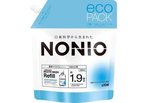 LION Ежедневный зубной ополаскиватель "Nonio" с длительной защитой от неприятного запаха (аромат трав и мяты) 950 мл, сменная упаковка с крышкой