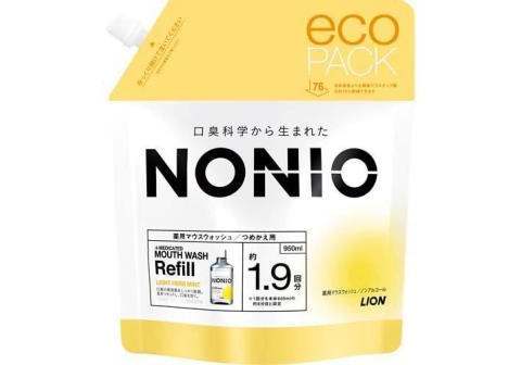 LION Ежедневный зубной ополаскиватель "Nonio" с длительной защитой от неприятного запаха (без спирта, лёгкий аромат трав и мяты) 950 мл, сменная упаковка с крышкой