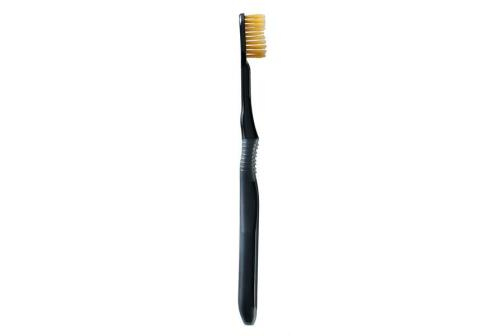 Широкая щётка покрывает максимальную поверхность, что повышает эффективность чистки. Жёсткие (серебряные в центре) и мягкие (золотые по краям) щетинки тщательно очищают зубы и бережно воздействуют на дёсна. Длинные сверхтонкие кончики щетинок (0,01 мм) верхнего ряда проникают в зубодесневой карман и вычищают зубной налёт. Короткие плоские щетинки нижнего ряда обеспечивают качественную полировку. Головка щётки с тонким основанием легко двигается в полости рта, проникает в труднодоступные места и достаёт до коренных зубов.
