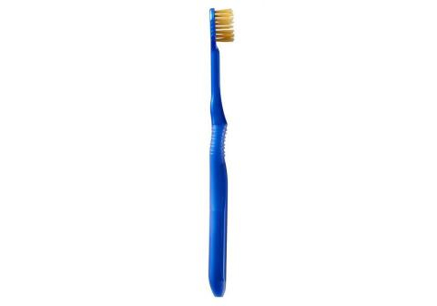Широкая щётка покрывает максимальную поверхность, что повышает эффективность чистки. Жёсткие (серебряные в центре) и мягкие (золотые по краям) щетинки тщательно очищают зубы и бережно воздействуют на дёсна. Длинные сверхтонкие кончики щетинок (0,01 мм) верхнего ряда проникают в зубодесневой карман и вычищают зубной налёт. Короткие плоские щетинки нижнего ряда обеспечивают качественную полировку. Головка щётки с тонким основанием легко двигается в полости рта, проникает в труднодоступные места и достаёт до дальних коренных зубов.