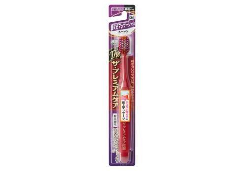 EBISU Зубная щетка с широкой чистящей головкой The Premium Care Gum Massage Plus овальной формы, со сверхтонкими концами щетинок и боковыми пучками для ухода за деснами, 7-рядная, средней жесткости.
