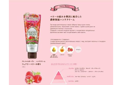 KOSE Крем для рук Precious Garden Fairy Berry питательный и увлажняющий, c тремя видами растительных масел со свежим ягодным ароматом 70г