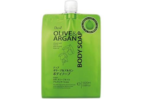 KUMANO YUSHI Deve Olive&Argan Body Soap Жидкое мыло для тела увлажняющее, с аргановым и оливковым маслом, сменная упаковка с крышкой 1000мл.