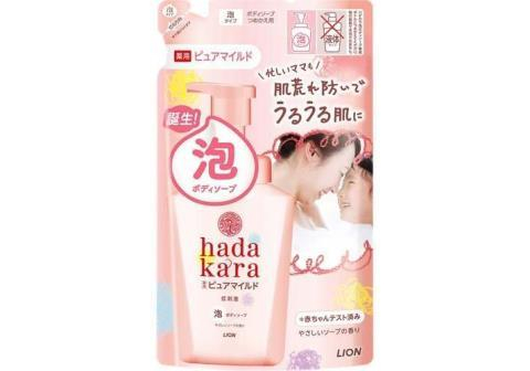 LION Бархатное увлажняющее мыло-ПЕНКА для тела "Hadakara" с нежным ароматом мыла (для чувствительной кожи) 440 мл, мягкая упаковка