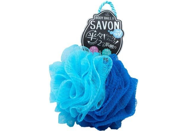 Мочалка для тела в форме шара 2-х сторонняя: мягкая/жесткая синяя Yokozuna 11см