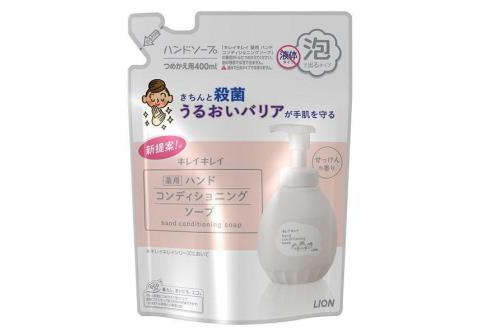 LION Увлажняющее мыло-пенка для рук Kirei Kirei Conditioning с антибактериальным эффектом и ароматом цветочного мыла, сменная упаковка 400мл.