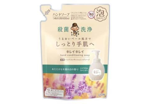 LION Kirei Kirei Hand Conditioning Увлажняющее мыло-пенка для рук с антибактериальным эффектом и ароматом цитруса и лаванды, сменная упаковка 400мл.