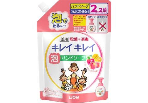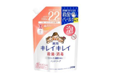 LION KireiKirei Fruit Mix Мыло-пенка для рук с ароматом фруктового микса, мягкая упаковка с крышкой, 450мл.