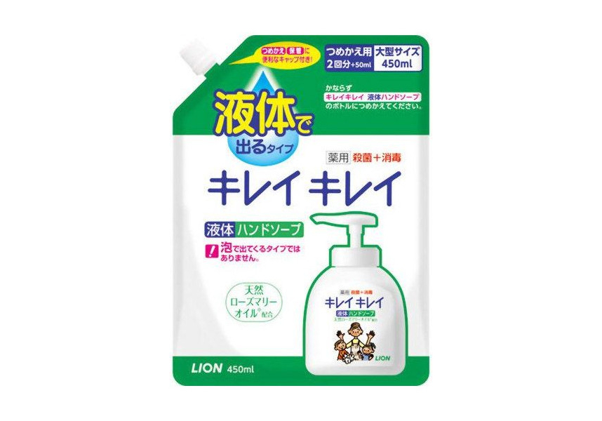 LION Жидкое мыло для рук "KireiKirei" с антибактериальным эффектом с маслом розмарина для всей семьи с фруктово-цитрусовым ароматом 450 мл, мягкая упаковка с крышкой