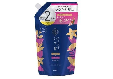 KRACIE Ichikami Damage Repair & Color Care Кондиционер для восстановления повреждений и ухода за цветом волос, с ароматом цветков лимона и цветущей вишни, сменная упаковка с крышкой 660мл.