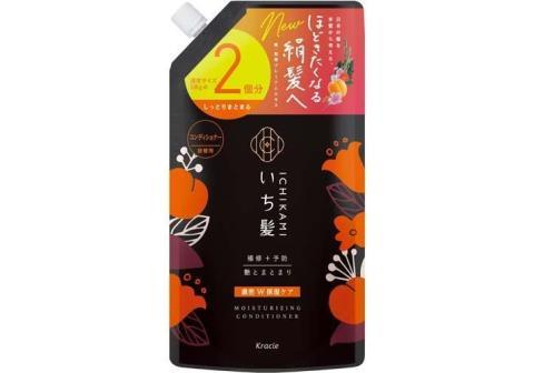KRACIE Ichikami Double Moisturizing Care Conditioner Кондиционер для интенсивного увлажнения поврежденных волос, с ароматом абрикоса и цветущей горной вишни, сменная упаковка с крышкой 660г.