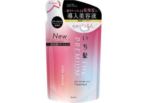KRACIE Ichikami The Premium Silky Smooth Treatment Восстанавливающий бальзам-ополаскиватель для гладких, шелковистых волос, с глубоким ароматом цветущей вишни, сменная упаковка 340г.