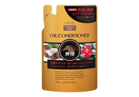 KUMANO YUSHI Deve 3 Natural Oils Кондиционер для сухих и поврежденных волос с тремя видами масел (лошадиное, кокосовое и масло камелии), сменная упаковка 400мл.