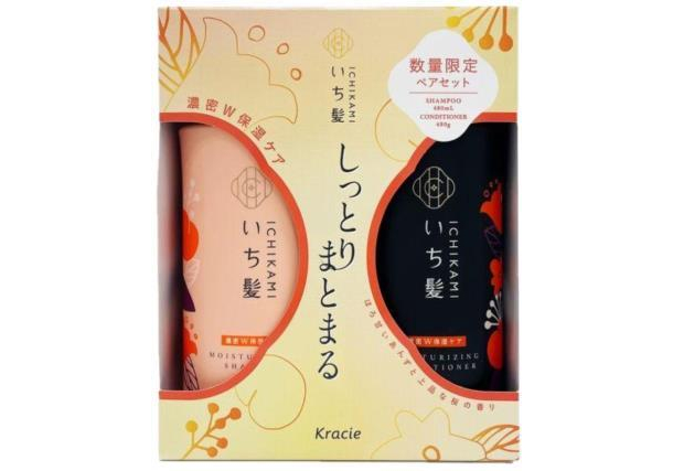 KRACIE Набор шампуня и кондиционера Ichikami для восстановления и предотвращения повреждений волос с ароматом абрикоса шампунь 480мл.+ кондиционер 480г.