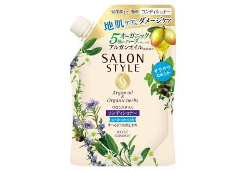 KOSE Salon Style Air in Smooth Кондиционер для волос разглаживающий, с органическими маслами, с ароматом цветов и трав, мягкая упаковка, 360мл.