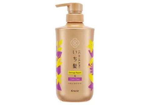 KRACIE Шампунь для восстановления повреждений и ухода за цветом волос Ichikami Damage Repair & Color Care с ароматом цветков лимона и цветущей вишни, помпа 480мл.