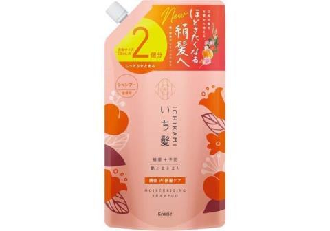 KRACIE Ichikami Double Moisturizing Care Shampoo Шампунь для интенсивного увлажнения поврежденных волос, с ароматом абрикоса и цветущей горной вишни, сменная упаковка с крышкой 660мл.