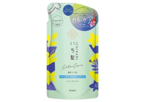 KRACIE Ichikami Color Care & Base Shampoo Восстанавливающий шампунь для ухода за окрашенными волосами, с ароматом цветущей горной вишни и цветков лимона, сменная упаковка 330мл.