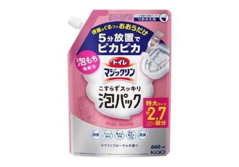 KAO Toilet Magiclean White Floral Чистящая и дезинфицирующая спрей-пенка для туалета, с ароматом белых цветов, мягкая упаковка с крышкой 660мл.