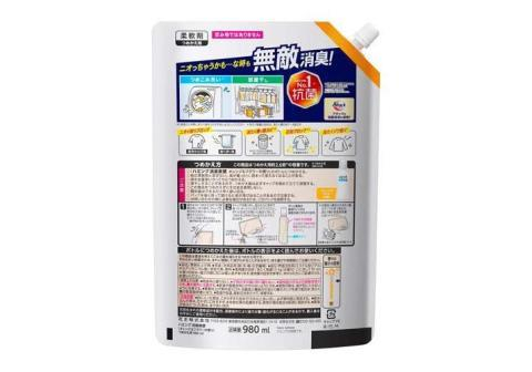 KAO Humming Feeling Orange & Flower Кондиционер-ополаскиватель для белья, с антибактериальным эффектом, с ароматом апельсина и цветов, мягкая упаковка с крышкой 980мл.