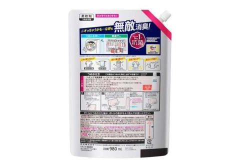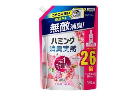 KAO Humming Feeling Rose & Floral Кондиционер-ополаскиватель для белья, с антибактериальным эффектом, с ароматом розового сада, мягкая упаковка с крышкой 980мл.