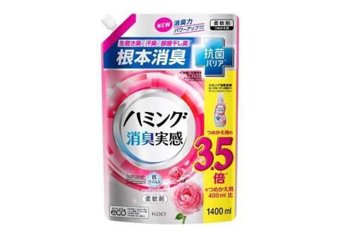 KAO Humming Feeling Rose Garden Кондиционер-ополаскиватель для белья, с антибактериальным эффектом, с ароматом розового сада, мягкая упаковка с крышкой 1400мл.