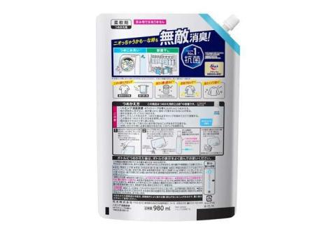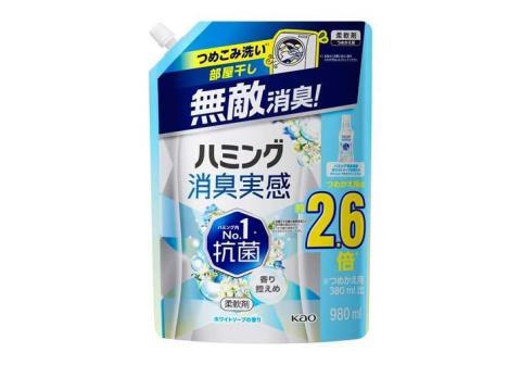 KAO Humming Feeling White Soap Кондиционер-ополаскиватель для белья, с антибактериальным эффектом, с нежным ароматом цветочного мыла, мягкая упаковка с крышкой 980мл.