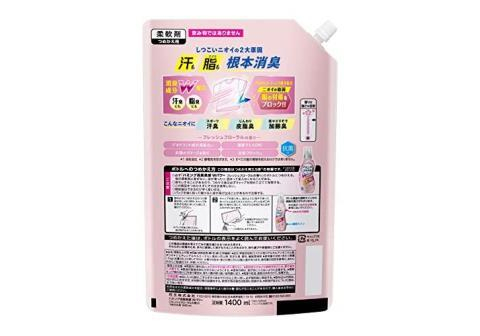 KAO Humming W Power Fresh Floral Кондиционер-ополаскиватель для белья, с антибактериальным и дезодорирующим эффектом, со свежим цветочным ароматом, мягкая упаковка с крышкой 1400мл.