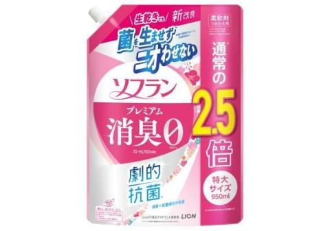 LION Кондиционер для белья Soflan Premium Floral Aroma с антибактериальным и дезодорирующим эффектом, с цветочно-ягодным ароматом, мягкая упаковка с крышкой 950мл. 1/6