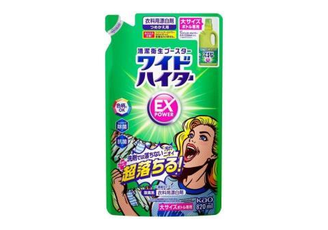 KAO Wide Haiter EX Power Жидкий концентрированный кислородный отбеливатель для цветного белья, с антибактериальным эффектом, с освежающим цветочным ароматом, мягкая упаковка 820мл.