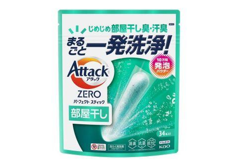 KAO Стиральный порошок Attack Zero Perfect Stick в стиках для сушки белья в помещении, с освежающим морским ароматом, 34 стика