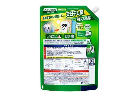 KAO Жидкое средство для стирки Attack Antibacterial EX for Room Drying с максимальным стерилизующим и дезодорирующим эффектом с насыщенным травяным ароматом сменная упаковка 850г.