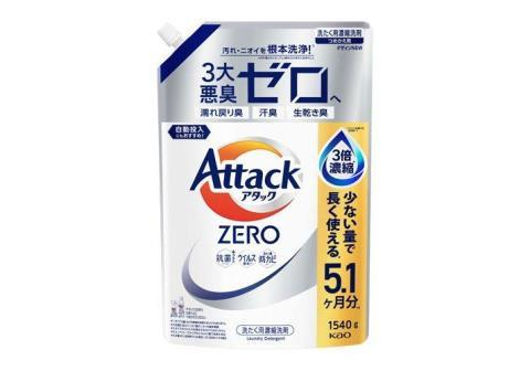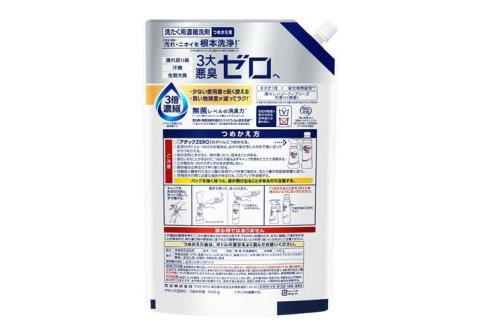 KAO Attack Zero Концентрированное антибактериальное жидкое средство для стирки, с легким ароматом свежей листвы, сменная упаковка с крышкой 1540г.