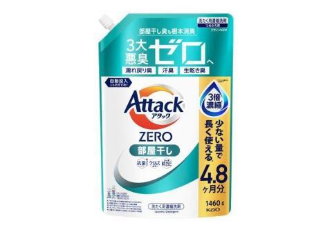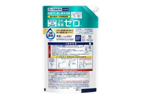 KAO Attack Zero Концентрированное жидкое средство для стирки против неприятных запахов при сушке в помещении, с ароматом морского бриза, сменная упаковка с крышкой 1460г.