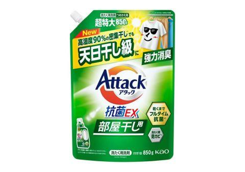 KAO Жидкое средство для стирки Attack Antibacterial EX for Room Drying с максимальным стерилизующим и дезодорирующим эффектом с насыщенным травяным ароматом сменная упаковка 850г.