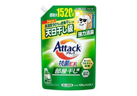 KAO Жидкое средство для стирки Attack Antibacterial EX for Room Drying с максимальным стерилизующим и дезодорирующим эффектом с насыщенным травяным ароматом сменная упаковка 1520г.